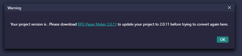 Topic starter Since updating to version 3.0.52, there has been a periodic issue where the engine will simply turn completely black and go unresponsive, forcing me to forcibly close the program. This time when reopening my project, this message appeared prompting to update to version 2.0.11, which doesn't make sense... When clicking OK, it seems to have automatically created a new project titled "Unknown" with the original path of the actual project, which when trying to open cycles the same error message. It seems my project is inaccessible as is.